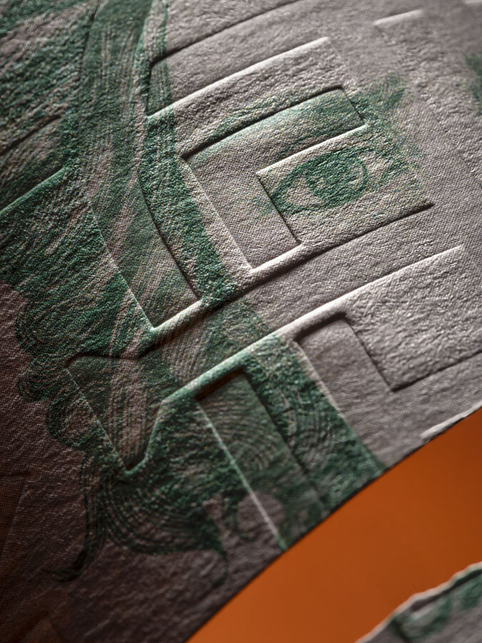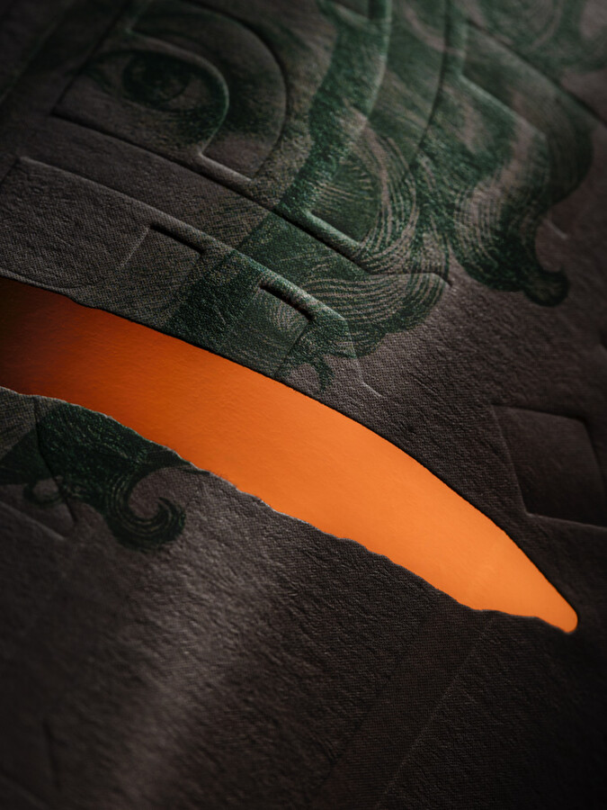 Sontuosa, il ritratto di una figura regale, dai lineamenti delicatamente indefiniti, senza suggerire un genere né una sessualità precisa: le labbra non sono rappresentate, come atto di libertà interpretativa. Un piccolo strappo all’altezza della bocca svela il contenuto della bottiglia, simbolo di un’esperienza ancora tutta da vivere, impossibile a raccontarsi solo a parole.